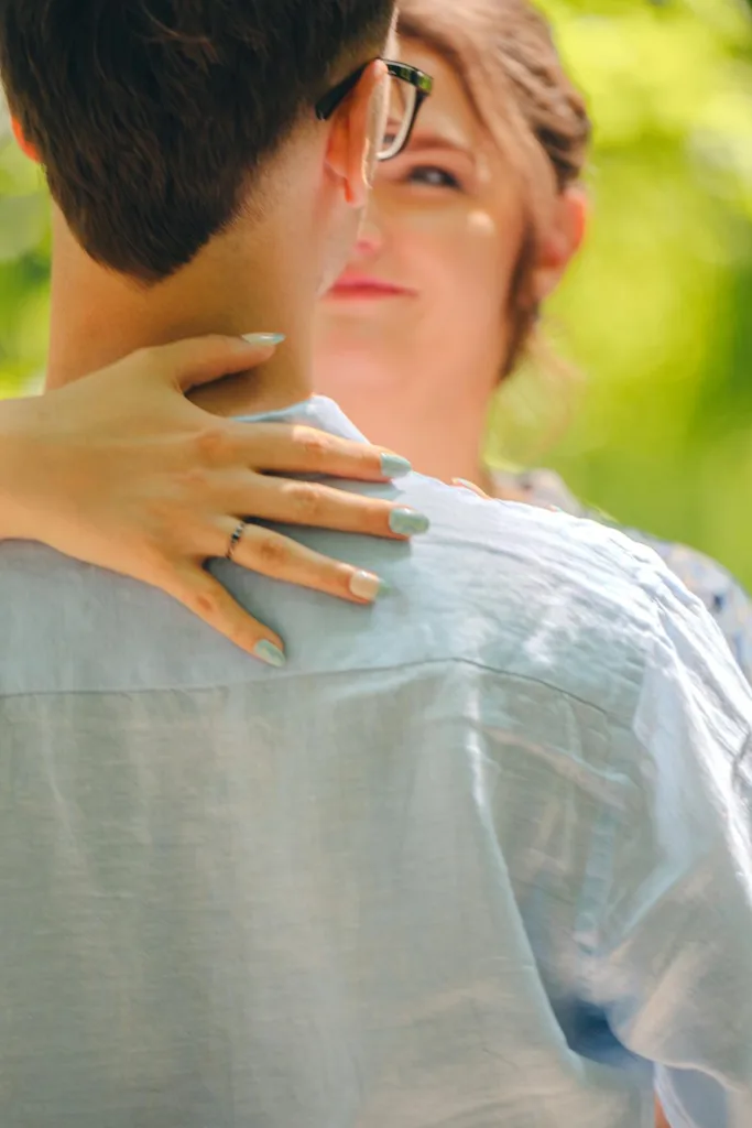 Wśród zieleni, miękkiego światła i ciepła letniego popołudnia, pozwolili sobie na chwile czułości i bliskości. Ona opierała głowę na jego ramieniu. On delikatnie ją obejmował. Żadne z nich nie udawało – byli po prostu sobą. A ja byłam tam, by to uwiecznić.
